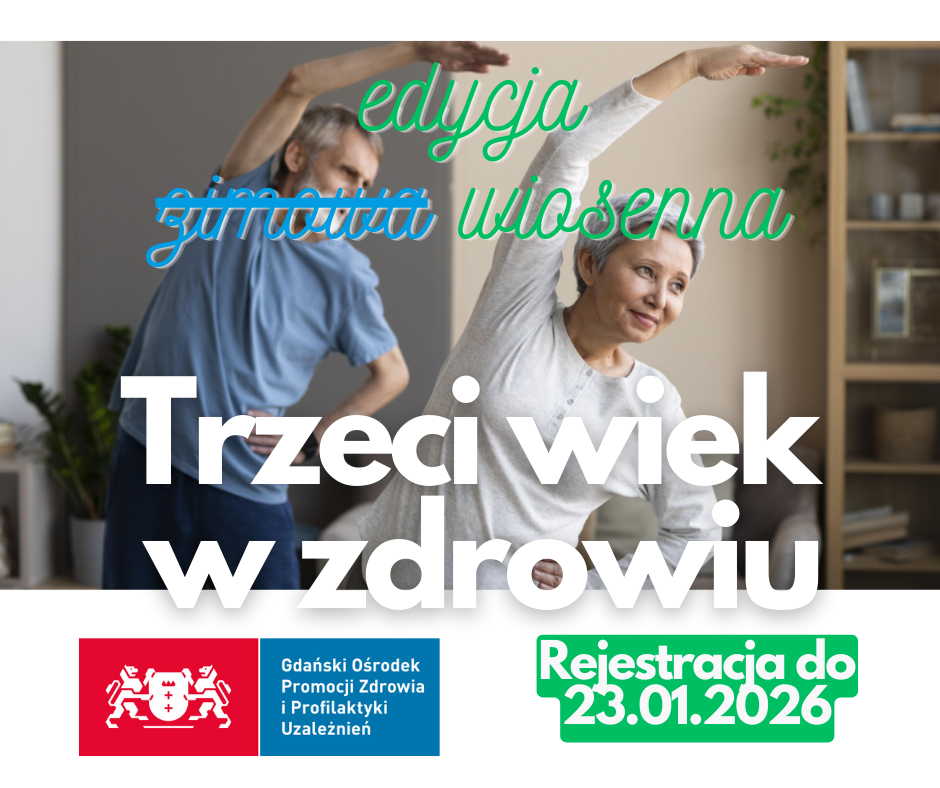Zapowiada się udana wiosna z programem Trzeci Wiek w Zdrowiu. Otwieramy rekrutację do cyklu spotkań i ćwiczeń dla osób w wieku 60+. Zapraszamy! Program jest przeznaczony dla mieszkanek i mieszkańców Miasta Gdańska 60+, które dotychczas nie brały udziału we wcześniejszych edycjach, Wiosenna edycja programu trwa od 26 stycznia do 10 kwietnia 2026r. Zajęcia odbywają się w każdy poniedziałek i czwartek w godzinach 9.00-14.30. Rozpoczęcie programu jest poprzedzone badaniami […]
