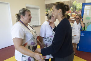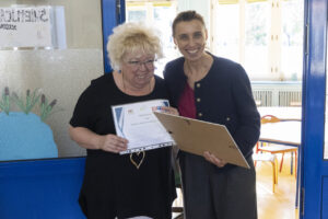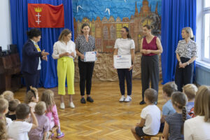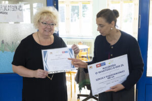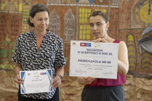 Dyplomy i vouchery na 6 tys. zł na zakup potrzebnego w kuchni sprzętu w Przedszkolu nr 66 i SP nr 44 wręczyła Monika Chabior, zastępczyni prezydent Gdańska ds. rozwoju społecznego i równego traktowania wraz z przedstawicielkami Gdańskiego Ośrodka Promocji Zdrowia i Profilaktyki Uzależnień, odpowiedzialnego za program „Gdańsk – jeMy zdrowo”.